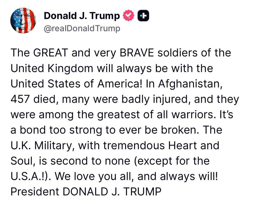 Trump has respect for the "British" forces but NOT NATO, UN or "british" oligarch. Monday 8pm